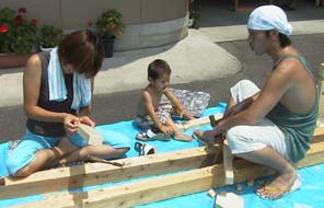 ![]() 社長もお手伝いしましたよ〜 大工さんのように、格好良くカンナを 使ってみたかったんだな〜!! |